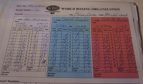 終盤は井岡が距離を取ってニエテスと対峙し、試合終了のゴング。高水準のフルラウンドを終えて、井岡やや優位かと思えたが、スコアは118-110、116-112、112-116でニエテスの勝ちを支持していた。ニエテスは42勝23KO1敗5分。井岡は23勝13KO2敗。