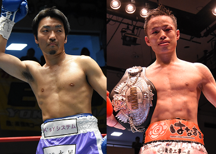 ミニマム級の挑戦者・田中(左)と王者・小野