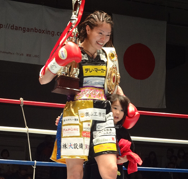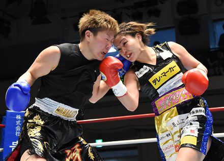 “シングルマザーボクサー”吉田は12勝1敗。「12勝だけどKO勝ちがないので、チャンピオンらしい試合がしたかった。まだまだだけど、ちょっとずつ強くなっていきたい。世界の話が来れば、まだ未熟ですけど、ぜひ世界に向かっていきたい」。初黒星の若狭は6勝2KO1敗。