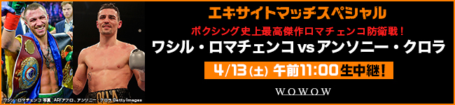 元王者のクローラは16年5月、ホルヘ・リナレス(帝拳=ベネズエラ)に王座を奪われて以来の返り咲きを狙う。不利が予想される中、「私のキャリアで最も重要な試合になる。リングにすべてを置いてくる用意ができている」と抱負を語った。