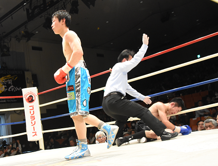 初回に右アッパーを決めて河野からダウンを奪った中川は、その後もフェイントを駆使して河野を翻弄。終盤の河野の追い上げをしのいで勝利した。2年ぶりに後楽園ホールで勝利の中川は7勝3KO4敗2分。日本フェザー級18位の河野は13勝7KO9敗2分。