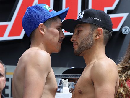 セミではオスカー・デラホーヤ氏のいとこ、ディエゴ・デラホーヤ(メキシコ)が同国のエンリケ・ベルナチェとフェザー級10回戦。両者とも126ポンド(57.15キロ)をマークした。またWBOラティーノS・ウェルター級王者パトリック・テシェイラ(ブラジル)がマリオ・ロサノ(メキシコ)と防衛戦。両者とも154ポンドを計測した。Photos:Tom Hogan-Hoganphotos/Golden Boy
