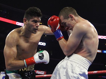 セミのL・ヘビー級12回戦は、WBO・S・ミドル級王者ヒルベルト・ラミレス(メキシコ)がトミー・カーペンシー(米)とのサウスポー対決に4回終了TKO勝ちを収めた。ラミレスは40勝26KO無敗。棄権したカーペンシーは29勝18KO7敗1分。
