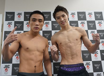 今年のチャンピオンカーニバル屈指の好カード、日本フェザー級タイトルマッチの計量が30日、日本ボクシングコミッションで行われ、チャンピオンの源大輝(ワタナベ)がリミットの57.1キロ、同級1位の阿部麗也(KG大和)が57.0キロで合格した。