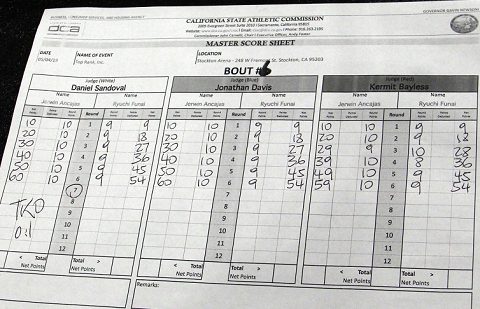 5回開始早々、船井にドクターチェックが入る。この回は両者ともにアクションが少なく、船井は6回に再びチャージ。しかしアンカハスの左、右フックをコンスタントに浴びて苦しい。ゴング間際に左を浴びてバランスを崩した。