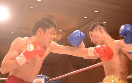 同フライ級タイトルマッチ8回戦は、松岡輝の双子の弟のチャンピオン、松岡新(大成)が右ジャブをよく出して鷲尾樹貴也(千里馬神戸)の接近を許さず、手数で勝って初防衛に成功した。松岡新は8勝4KO6敗、鷲尾は7勝2KO3敗1分。