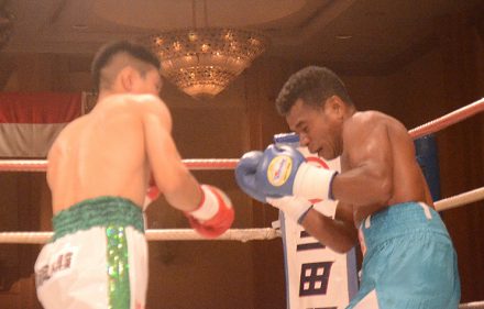 セミで元OPBFL・フライ級2位の大内淳雅(姫路木下)が17年8月、拳四朗(BMB)とOPBFと日本L・フライ級王座を争って敗れた試合以来、約3年ぶりにカムバックを果たし、インドネシア・ランカーにTKO勝ちした。