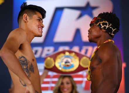 もう一つの世界戦、WBO世界S・バンタム級タイトルマッチは、王者エマヌエル・ナバレッテ(メキシコ)が121.6ポンド(55.1キロ)、挑戦者の前王者アイザック・ドグボエ(ガーナ)が121.4ポンド(55.0キロ)で合格した。
