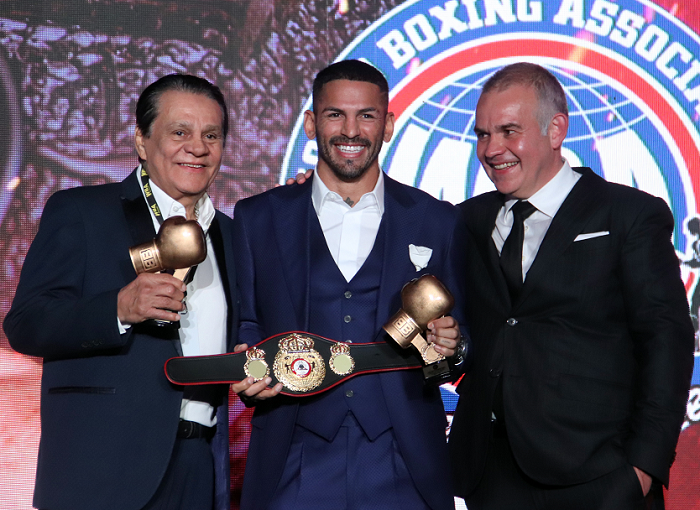 昨年、薬物違反でミドル級王座を失ったサンダースは7ヵ月ぶりに世界王座君臨。戦績を28勝13KO無敗とした。WBOインターコンチネンタル王者イスフィは27勝20KO4敗2分。