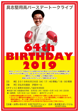 ■国際ボクシング名誉の殿堂入りの元世界チャンピオン、白井・具志堅スポーツジムの具志堅用高会長が6月26日、日仏文化協会汐留ホールで自身初となるバースデー記念トークライブを開催する。