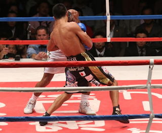 | 内山がフィニッシュのボディブローを決めた瞬間 |
