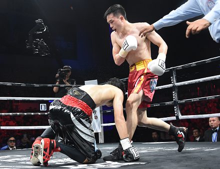 4回に入ると徐がピッチを上げ、さらに手数を増して久保に迫る。5回にはワンツー、右ストレートを立て続けにヒット。劣勢を強いられた久保は左フックを食らってダウンを喫した。
