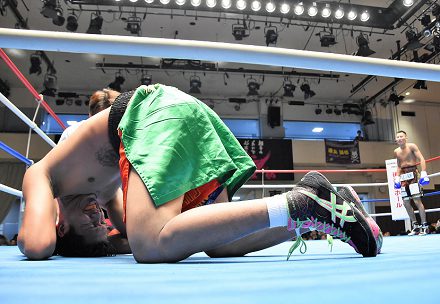 日本S・バンタム級4位の中川は1月、日本王座決定戦で田村亮一(JBS)に敗れて以来のリング。初回、三浦とポジションが入れ替わった瞬間、振り向きざまに右を決めてダウンを奪った。