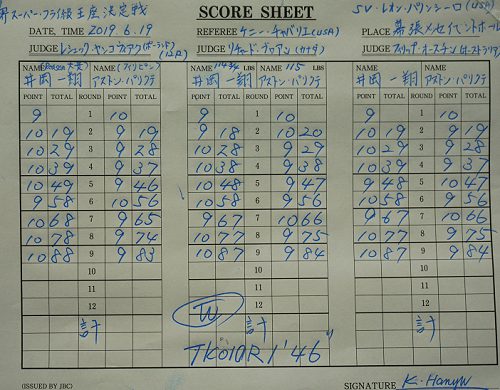 8回以降は井岡の打っては離れのボクシングが機能した。特にボディブローが有効だった。迎えた10回、井岡の右が炸裂するとパリクテがグラり。すかさず畳みかけると、フラフラになったパリクテを主審が救った。