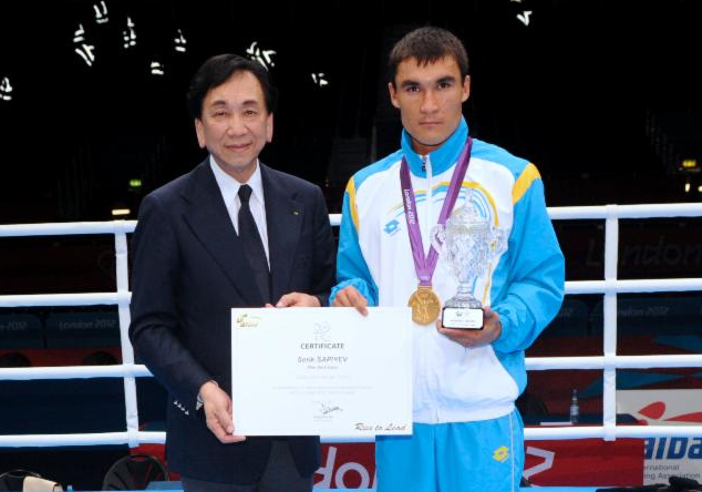 昨年のロンドン五輪で呉経国AIBA会長から表彰されるサピエフ