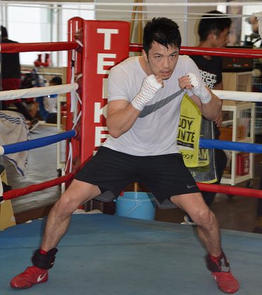 試合まで2週間あまりとなった村田はカルロス・リナレス・トレーナーとのミット打ちや、リングにロープを張り、足首に重りをつけてのダッキング&ウィービングなど、基本的でありながら追い込んだメニューをこなした。
