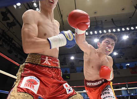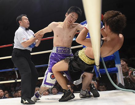 サウスポーの井上は2回、ジャブ、左ボディで圧力をかけ、池田をコーナーに追い詰めて、左ストレート、右フックを強振。池田はここを抜け出したが、左を合わされてロープにもたれると、これがダウンと判定された。