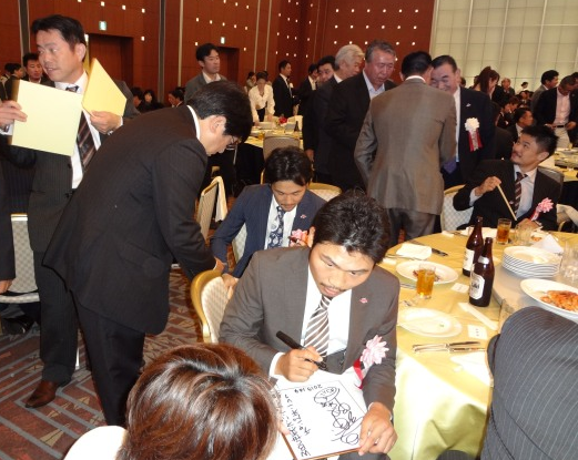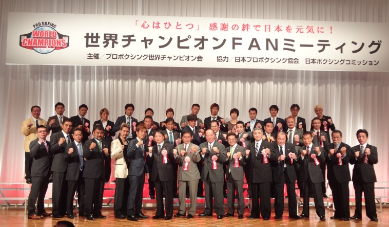FANミーティングには約320人のファンや関係者が集まり、俳優の千葉真一さんらも来賓として出席。チャンピオン会のガッツ石松会長は「チャンピオン会ができて4年。その間に東日本大震災が起こり、我々はチャリティー募金などをしてきた。これからも感謝の気持ちを忘れず活動していきたい」とあいさつし、今後もチャンピオン会として社会貢献していく決意を表明した。