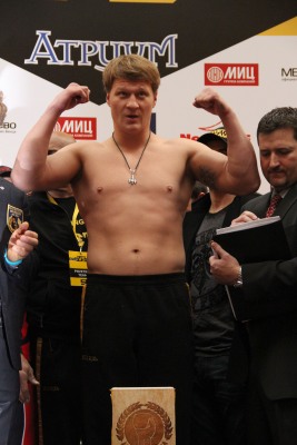 日本時間明日6日、モスクワのオリンピックスタジアムで行われる3団体統一世界ヘビー級タイトルマッチの計量が現地時間4日、当地で行われた。3団体統一王者ウラディミール・クリチコ(ウクライナ)は241.6ポンド(109.6キロ)、WBA正規王者アレクサンデル・ポベトキン(ロシア)は225.7ポンド(102.4キロ)を計測した。