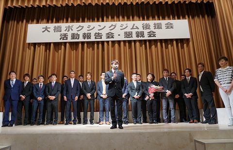 大橋ボクシングジム後援会活動報告会・懇親会が18日、横浜市内のホテルで開かれ、大橋ジム所属選手とトレーナーが集まった約300人の後援者に激励された。大橋秀行会長は、WBA・IBF世界バンタム級王者、井上尚弥のWBSS決勝について、開催時期は現段階で11月との見通しを示した。