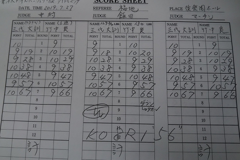 体力勝負になるとやはり三代だ。三代は8回に圧力をかけると、竹中は後退。捨て身でパンチを振り回したが、三代の右でキャンバスにダイブ。カウント中にタオルが投入された。