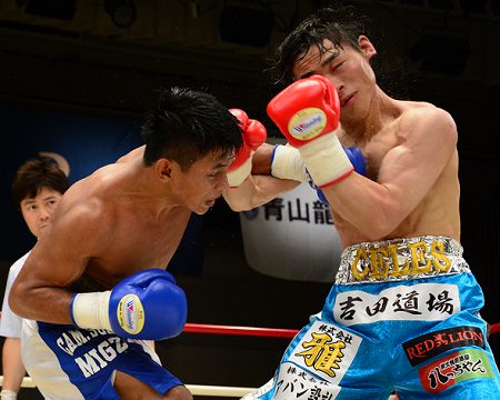 気をよくしたデスティノは攻勢を強め、3回も右ストレートと左フックで優勢。4回は岩原もコツコツとようやく反撃に出、打たれ強さに不安のあるデスティノとスリリングな攻防となる。