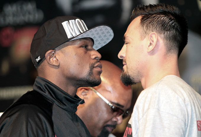 | メイウェザー(左)とゲレロのフェイスオフ |