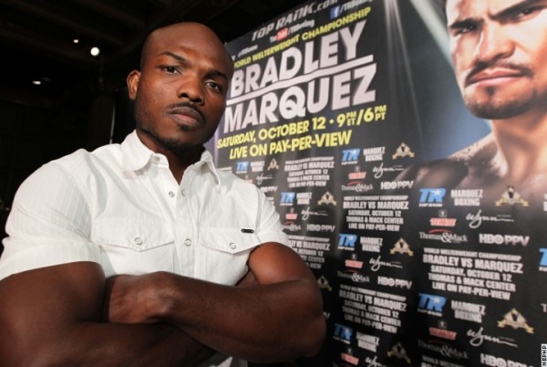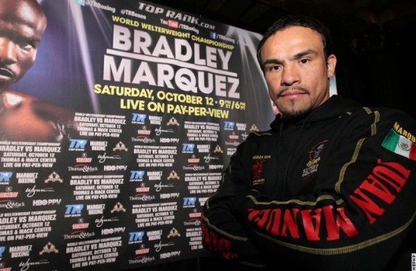 今週土曜日12日(日本時間13日)ラスベガスのトーマス&マック・センターで予定されるWBO世界ウェルター級タイトルマッチの記者会見が7日(日本時間8日)ロサンゼルスで行われ、王者ティモシー・ブラッドリー(米)、挑戦者でWBO世界S・ライト級王者フアン・マヌエル・マルケス(メキシコ)が抱負を語った。
