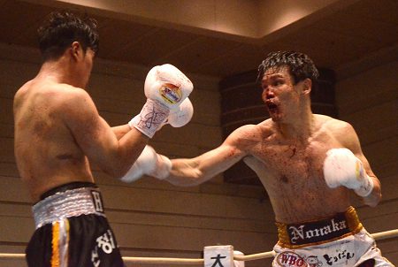 国内現役最年長王者の野中はフットワークを生かしながら、右ジャブを繰り出して間合いを十分にとっての滑り出し。韓国同級王者で8勝7KO2敗のハードパンチャー、ヤンはラッシュをかけてくると予想されたが、野中の動きを見る形で試合が進んだ。5回からヤンが攻勢を強め、6回終盤にカウンターの右ストレートが野中の鼻柱に命中。野中の鼻の上が横に切れて大量の出血。