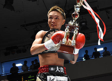 久我は21日、日本S・バンタム級王座の初防衛戦で強打爆発、挑戦者3位の藤原陽介(ドリーム)を1回TKOで退けた試合が評価された。