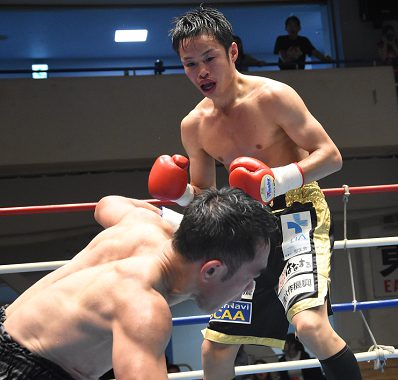 前日本ミニマム級王者の小野は1月、田中教仁(三迫)に王座を奪われてからの再起戦。4連勝中の日本フライ級15位、小久保とのサウスポー対決は、小野が左右に動きながらジャブ、左ボディ、左アッパーを打っては離れ、前に出るファイターの小久保をさばく展開となった。