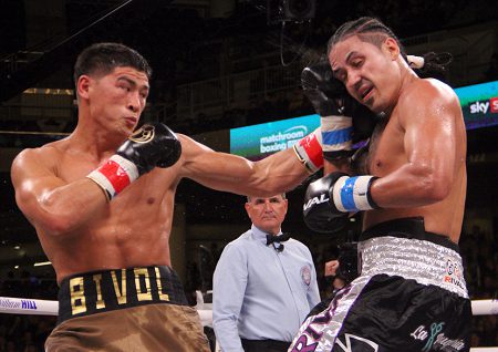 同じリングのWBA・L・ヘビー級タイトルマッチは、王者ディミトリ・ビボル(ロシア)が挑戦者レニン・カスティーヨ(ドミニカ共和国)に6回、右でダウンを奪い119-108☓2、120-107の3-0判定勝ち。7度目の防衛に成功した。Photos/SUMIO YAMADA
