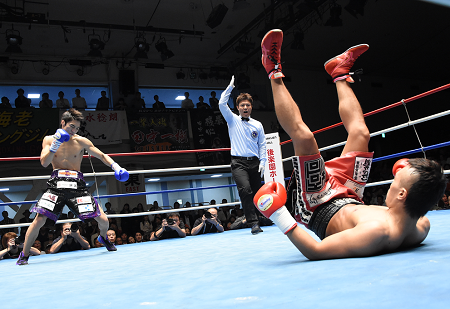 しかし小原は4回、さらにペースアップ。垂水も負けじと応戦して試合は白熱する。垂水の右が決まるシーンもあったが、攻める小原が右を決め、続けて右を打ち込むと垂水が背中からキャンバスへ。立ち上がったところに再び右を打ち込んでフィニッシュとなった。小原は22勝20KO4敗1分。垂水は12勝6KO4敗3分。
