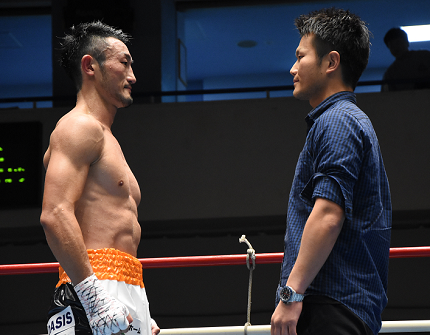王者・佐川遼(三迫)「衝撃的な勝ち方で動揺しています。丸田選手を戦うために、12月にしっかり初防衛して丸田選手を迎えられるようにがんばります(12月12日に日野僚=川崎新田とV1戦)」