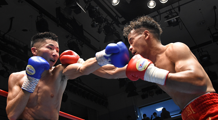世界挑戦経験もあるIBFウェルター級8位の小原がジャブから右ストレート、右アッパーを狙っていく立ち上がり。先手を取って試合を組み立てた。気迫十分の垂水は3回に攻勢を強め、前に出て手数を増やすと、右が浅いながらもヒット。アップセットへの意欲を感じさせた。