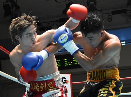 梶(右)は初回にダウンを喫しながら追い抜いて判定勝ち