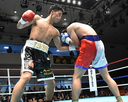 東農大出身のサウスポー中野に対し、ナトゥプラグはワイルドに右を振っていく立ち上がり。初回はクリンチも多かったが、中野は左ボディから相手を崩していこうとした。ボディを効かせた中野は3回、強烈な左を叩き込んで比人をキャンバスへ。ノーカウントでストップとなった。中野はデビューから4連続KO勝ち。ナトゥプラグは8勝7KO2敗2分。