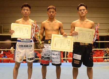 技能賞は日本拳法出身のサウスポー、前田稔輝(じんき、23=グリーンツダ)が4勝4KOの福永輝(20=沖縄ワールドリング)の強打を封じて獲得、敢闘賞は4戦4勝4KOの藤田裕崇(やすたか、24=名古屋大橋)が2回に右フックを爆発させてTKO勝ちして選ばれた。