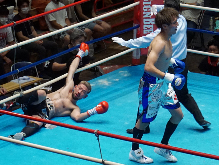 サウスポーのベスプーチンが目まぐるしく動き、身長で上回るブタエフが左右アッパーで迎撃する展開で進行。6回、ブタエフの右ボディーにベスプーチンの左が交錯。8回、左ボディーでチャージするベスプーチンに9回、ブタエフが連打でロープへ追い込む。終盤、右マブタをカットしたベスプーチンだが、公式スコアは3者一致の116-112でベスプーチンの手が上がった。