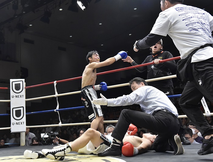 長身サウスポーの平岡は2回、右フックでダウンを奪うと、立ち上がったカサレスに連打を浴びせてストップ勝ちした。敗れたカサレスは13勝5KO9敗。