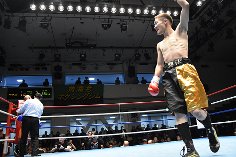 日本・フライ級3位のサウスポー佐藤が身体を振りながらプレスをかけ、下から左ボディ、左フックで日本同級6位の多田に迫る。多田も右ストレート、右ボディアッパーを打ち込んでいったが、佐藤の左フックでダメージを負った。佐藤は2回も圧力を弱めず、左で多田からダウンを奪った。