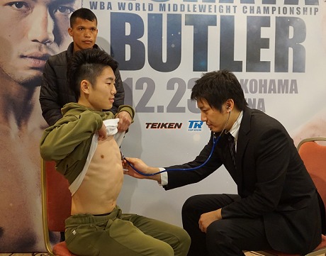 IBF世界フライ級タイトルマッチに出場の同級14位、世界3階級制覇の八重樫東(大橋)が20日、ホテルグランドパレスで行われたトリプル世界タイトルマッチの予備検診を王者モルティ・ムザラネ(南アフリカ)とともに受けた。