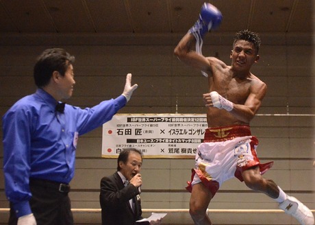 3回、石田がようやく右ストレートを放つが、ゴンサレスの勢いは止まらない。中盤からボディへのパンチで石田は挽回を図るも、ここからの一気の攻めは不発に終わり、11回には右目上をカット、石田は最後までペースに乗れなかった。