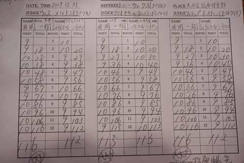 10、11回は井岡が攻め、シントロンが足を使って逃げながら起死回生のカウンターを狙うという内容。オリンピックに2度出場、アマ200戦以上のキャリアを誇るシントロンは試合をあきらめず終盤も左で井岡を脅かす。井岡は最後まで攻めきって終了のゴングを聞いた。井岡は25勝12KO2敗。シントロンは11勝5KO1敗1無効試合。
