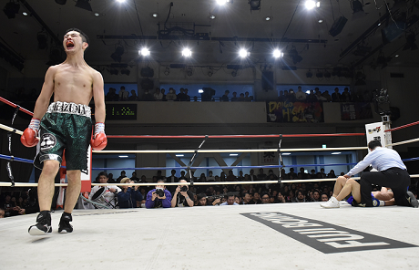 比嘉は6回、強烈ボディで試合を終わらせた