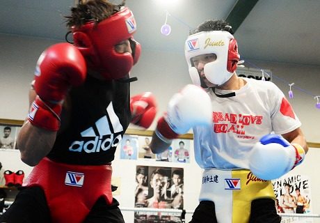 日本ユース・バンタム級王者の石井渡士也(REBOOT.IBA)と8ラウンド、そして岡田隆志トレーナーと4ラウンド。熱海の走り込み合宿(17〜19日)の疲れもまだ残る中、長丁場の実戦練習を志願した。