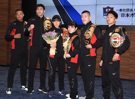 会議後3人は先のアジア・オセアニア予選で自力で出場資格を手にしたウェルター級岡澤セオン(鹿児島体育協会)、女子フライ級の並木月海(自衛隊)、フェザー級の入江聖奈(日本体育大学)と一緒に記者会見に臨んだ。