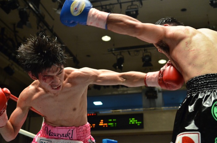 スタートから飛ばしたのは雪辱に燃える東郷。右ストレートと左フックを次々に打ち込み三好を後退させた。しかし三好は2回、距離をつぶす戦術にシフトして、逆に右で東郷をグラつかせる。3回からは両者の意地がぶつかり合うも、東郷の強打がやや上回っている印象。5回、偶然のバッティングで三好が右目じりをカットして試合が終わった。東郷は王座返り咲き。三好は初防衛に失敗するとともに、6月の世界初挑戦に続く連敗となった。