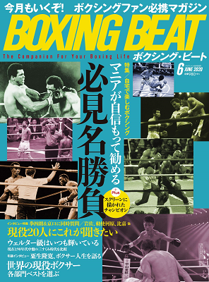 ボクシング・ビート最新号が15日に発売となりました。表紙は過去の名勝負。今回は「自宅で楽しむボクシング」特集をお届けします。約30人のマニアが選んだ「マイ・ベスト5番」と、実在のボクサーを描いた映画12本の二本立て。