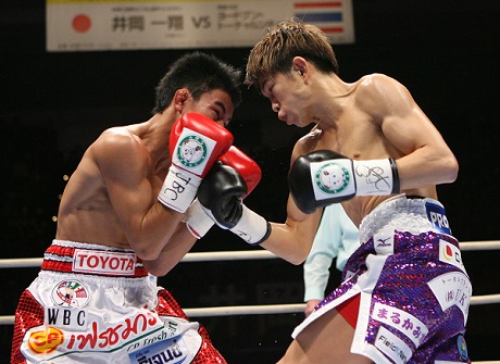 ヨードグン・トーチャルンチャイ(タイ)を迎えた井岡はスタートからプレスをかけると、右アッパー、左ボディでダメージを与え、相手が攻めてきたところに左フックを一閃。倒れた挑戦者は立ち上がることができず、わずか1分38秒でTKOとなった。
